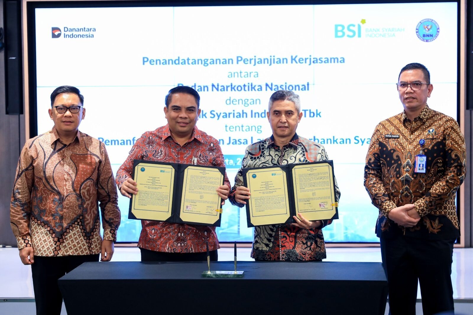 Direktur Sales and Distribution BSI, Anton Sukarna, menyatakan komitmen institusinya dalam mendukung misi BNN. “Kami mendukung melalui pemanfaatan produk, layanan, dan data perbankan syariah untuk menunjang pemberantasan narkoba,” ujarnya.